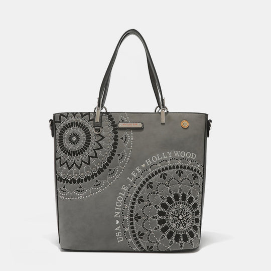 Sold out                                      Nicole Lee USA Metallic Stitching Embroidery Inlaid Rhinestone Tote Bag Regular price $69.99+ 1 moreThe classic shopper elevated with high-shine embroidery and sleek hardware, our Josefina shopper opens up to 3 spacious compartments to keep your essentials organized. Bag size: Medium Material: Vegan Leather Imported Product measurements: Vegan leather exterior...