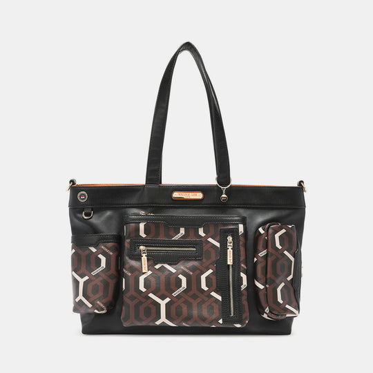 Sold out                        Nicole Lee USA Geometric Pattern Large Handbag Regular price $73.99This versatile handbag is not only a modern statement piece with its geometric design and edgy exotic accents, but it also offers practicality with its numerous pockets, including a convenient bottle holder. Whether you're heading to...