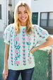 This jacquard knit vertical floral print sweater with short bubble sleeves is a must have, throw-on-and-go staple that can add instant flair to whatever you layer it with. Add a pop of color over all your denim with this gorgeous sweater top.