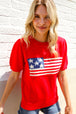 American Flag Print + Short Puff Sleeves + Jacquard Knit