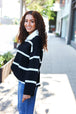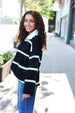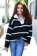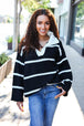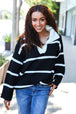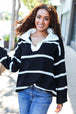 Featuring soft stripe knit, a notched neck, wide collar and oversized fit, this sweater will add a trendy casual element to your fall and winter wardrobe.