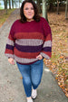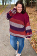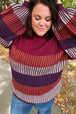 This multicolor stripe cabled sweater will help you stay cozy on cool, crisp days and features a round neck and bubble sleeves. Pair this oversized pullover with all your denim.