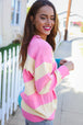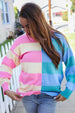 If your knit sweater game needs a refresh, reach for this round neck blue and blush striped top. With an oversized fit and cozy knit fabric, this sweater will be your go to this early spring.