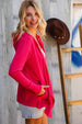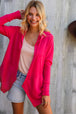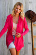 This open front scarf hem cardigan with hoodie is perfect for cool evenings or coastal vacays. Lightweight with front pockets, this textured knit cardigan is bright and cherry and perfect for layering.