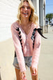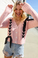 This chunky sweater cardigan with stunning black bow details and cream buttons will make any every ensemble put together. This will soon be your go-to spring closet staple.