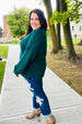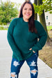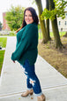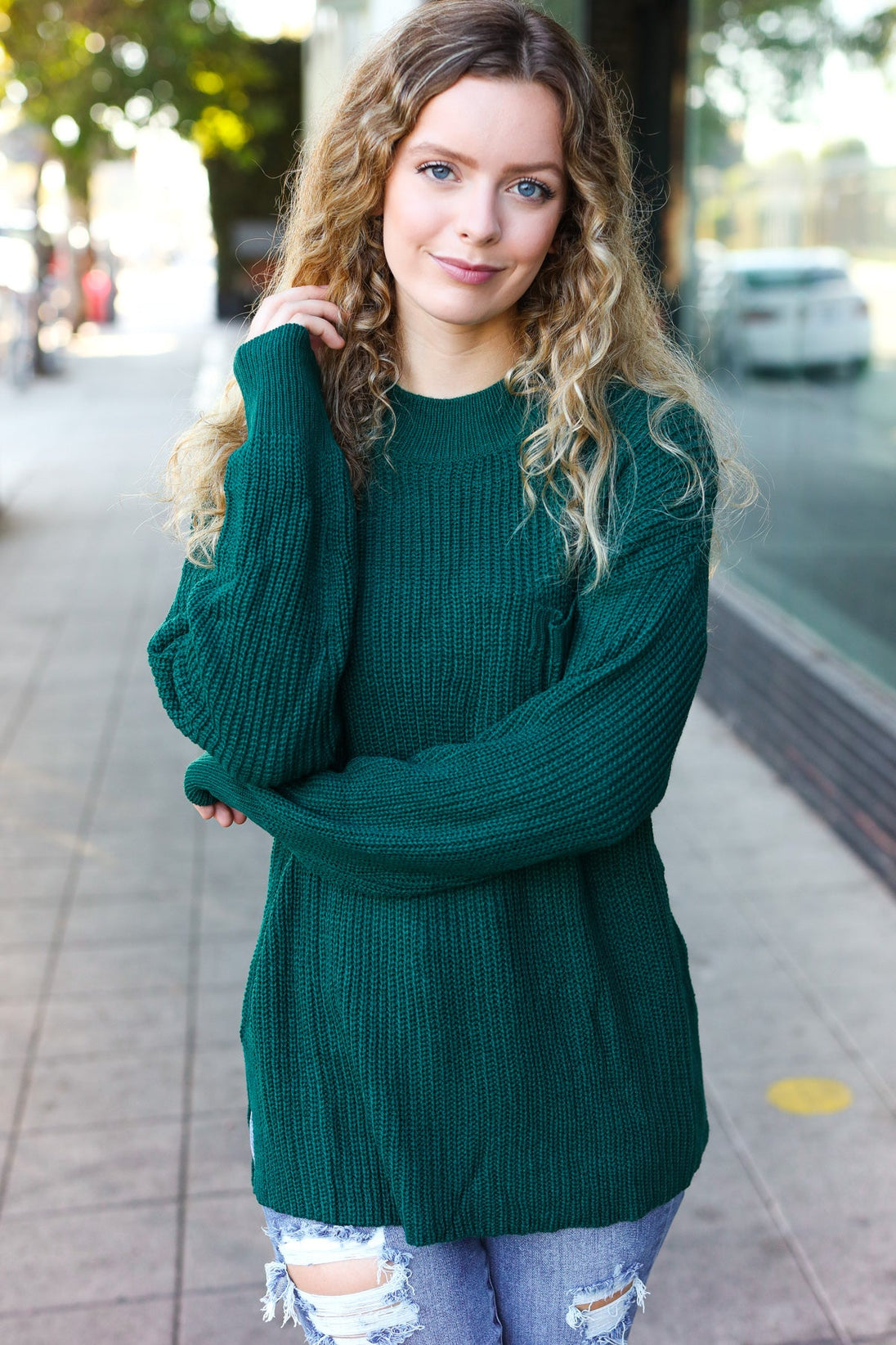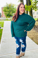 Snuggle up on chilly days in this roomy mock neck, drop shoulder top fashioned with a front pocket, side slits and soft knit.