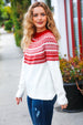 Slip on this mock neck sweater with holiday fair isle print over denim, leggings or faux leather pants for a classic, casual style. Ribbing on the hem and sleeves and the soft brushed knit give this top that it factor.
