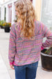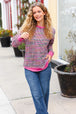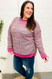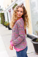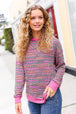 Look stunning in this multicolor textured waffle knit sweater finished with banded cuffed sleeves and a round neck. A back seam yoke and reverse out seam stitching complete this casual chic sweater top.
