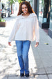 Feeling Femme Ivory Ribbon Bow Tie Folded Puff Sleeve Top Regular price $24.99