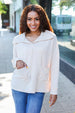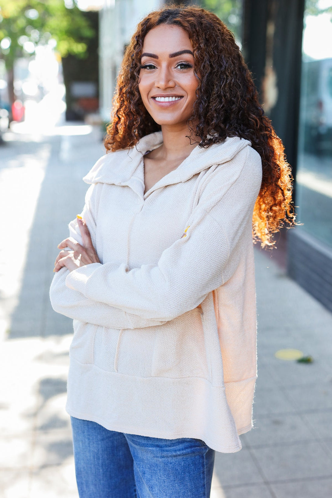 Featuring textured jacquard knit, a notched neck, oversized collar, front pockets and outseam reserve stitching, this pullover top will add a trendy casual element to your fall wardrobe.
