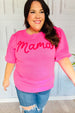 Calling all "Mama's" with this pop up embroidered sweater top featuring a round neck, short puff sleeves and soft knit. Get your adorable on with this spunky sweater top!