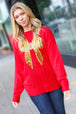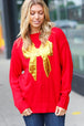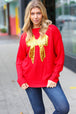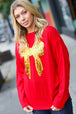 Get ready for all the the holiday parties with this sequin bow embroidery patch knit sweater pullover. A round neck and an oversized fit completes this adorable design.