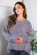 This sweater is seriously one of the softest we’ve felt in a while. It’s got that textured knit that feels like a fuzzy blanket. The relaxed fit makes it easy to just throw on with jeans or leggings, and the v neckline gives it a little shape. The ribbed lines run down the whole sweater so it lays really nicely. We like the little stitch detail on the shoulders too, just adds a touch of dimension.