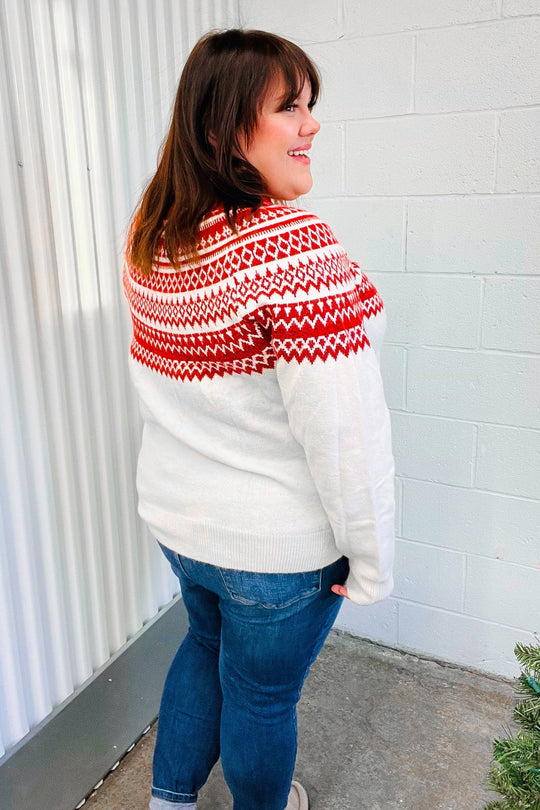 Feeling Festive Ivory & Red Fair Isle Mock Neck Sweater