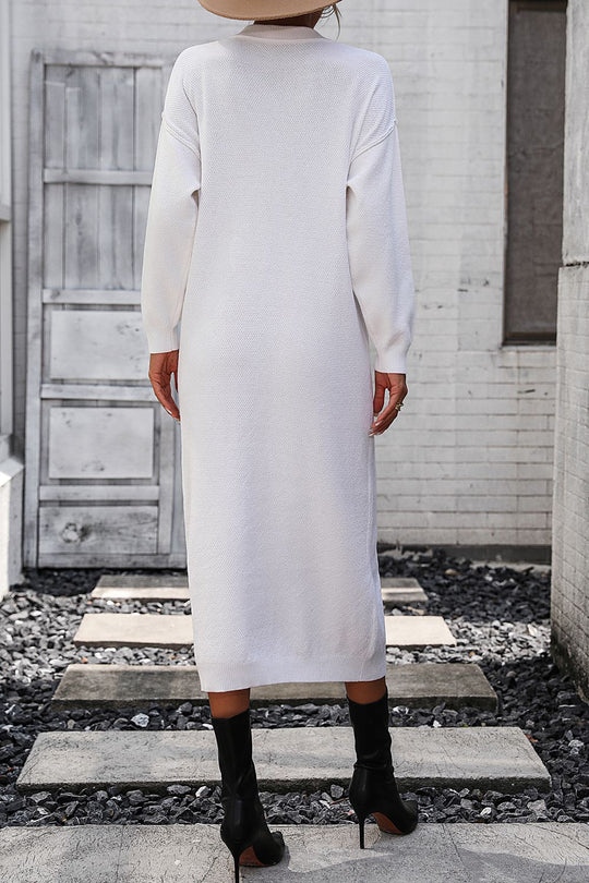 Decorative Button Notched Dropped Shoulder Sweater Dress