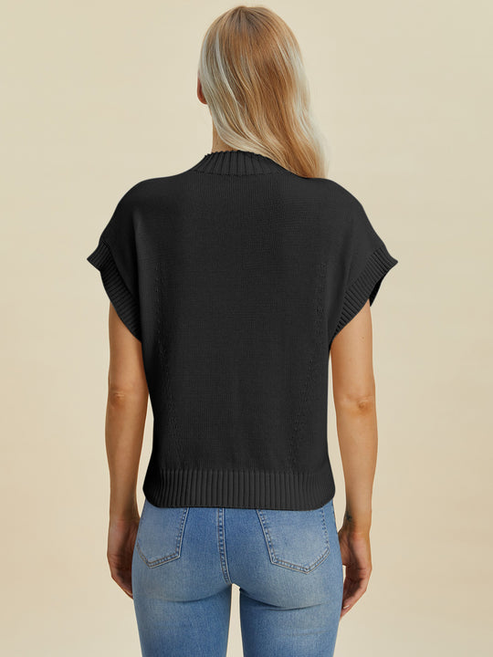 Double Take Full Size Mock Neck Short Sleeve Sweater
