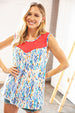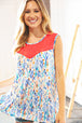 Make a statement with this boho ethnic print tank top boasting a coral jacquard lace yoke for a romantic vibe. With a banded round neck and a color block design, turn heads with this trendy tank.