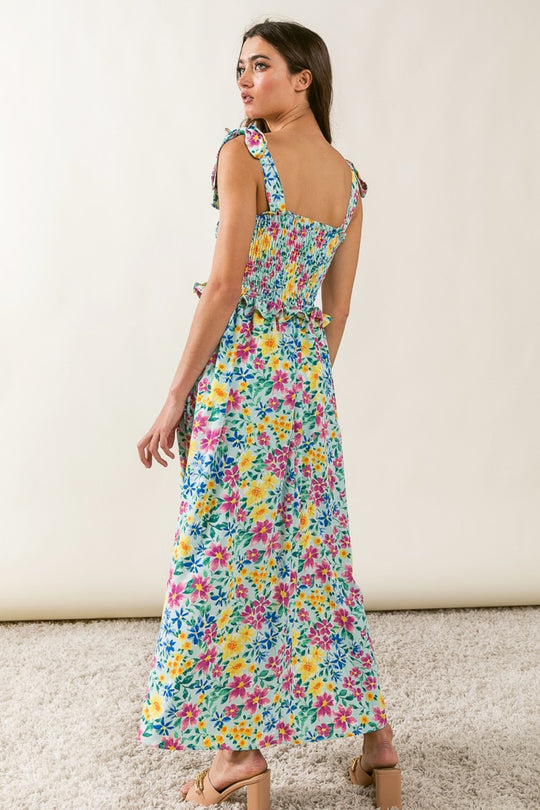 BiBi Floral Ruffle Trim Smocked Cami Dress Regular price $77.99This floral ruffle trim smocked cami dress is a charming and feminine choice for any summer occasion. The floral print adds a touch of whimsy and romance to the dress. The ruffle trim detailing gives it...
