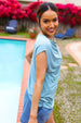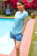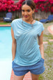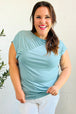 This modal knit top is the perfect addition to your summer closet. With an asymmetrical style and shirred drop shoulder, it's perfect for work or play!