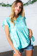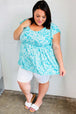 Brighten your closet with this aqua top sporting a round neck and flowy ruffle short sleeves. Step out in style with this beautiful bohemian print babydoll top!
