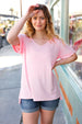 Elevate your average short sleeve top with this trendy piece made with super soft ribbed knit, side slits, v neck and cuffed sleeves. This casual high-low to is super soft and offers comfort for wherever you're headed!