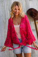 This versatile front tie bell sleeve crochet cardigan in a beautiful fuchsia is the perfect summer staple Get instant chic styling with all your ensembles with this stunner!