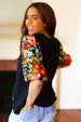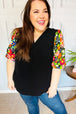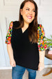 Donning a banded V neck, this woven top features vibrant floral print elbow length puff bubble sleeves and a flattering silhouette.  Wear with skinny jeans for a stunning contrast.