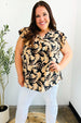 Geometric Abstract Print + V Neck + Flutter Sleeve