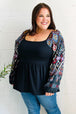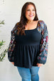 Fun and flirty, this square neck elastic waist bubble sleeve top features a babydoll peplum design. Buttery smooth fabric will keep you cozy, while a unique border print woven bubble sleeves is eye catching. Pair with your fav jeans.