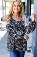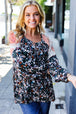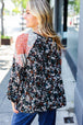Upgrade your fall fashion with this stunning woven boho floral and Ethnic print blouse with long elastic bubble sleeves and a front tie design. Be prepared to turn heads!