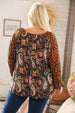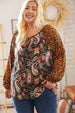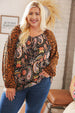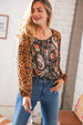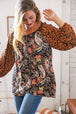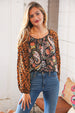 Upgrade your fall fashion with this stunning top that combines a paisley and leopard print design. With long elastic bubble sleeves and a front tie design, be prepared to turn heads!