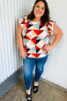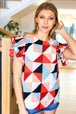 This stunning geometric print top designed with smocked ruffle frill sleeves and a back neck button enclosure will catch glances everywhere you go!