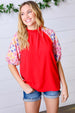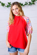Elastic Puff Sleeve + Frilled Mock Neck + Floral Print