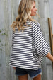 Stand out in this cotton blend stripe raglan designed pullover featuring side slits, a rund neck and trendy outseam overlock stitching. Get instant chic styling with this trendy top.