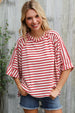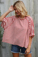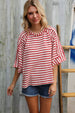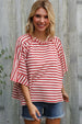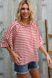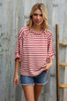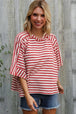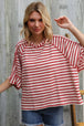 Stand out in this cotton blend stripe raglan designed pullover featuring side slits, a rund neck and trendy outseam overlock stitching. Get instant chic styling with this trendy top.