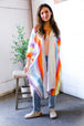 We’re kinda obsessed with this one. This rainbow kimono is light as air and has that floaty, effortless feel we all want when it’s warm out. The colors blend like a summer sunset — soft pinks, purples, mint green, a pop of orange, a bit of blue and even streaks of gold too. It’s a long open style with loose sleeves that hit just below the elbow, and it drapes in a really pretty way no matter how you move.