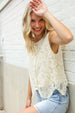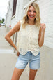 Slip on this cotton sleeveless scalloped hem vest top over any bottoms for instant chic appeal! Made with stunning floral lace and a button-down design, add instant casual chic to any ensemble with this stunner!
