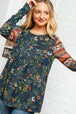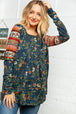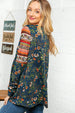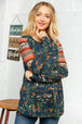 Step out in fashion this fall with this trendy ethnic sleeved babydoll top made with super soft Hacci fabric and a color block design.