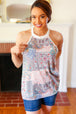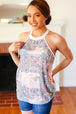 Bring boho-chic appeal to your closet with this trendy tank top that combines thermal paisley fabric with a cream ribbed fabric back. Perfect for your sun kissed summer skin.