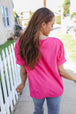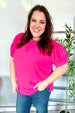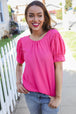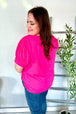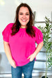 This versatile and classy solid elasticity silk back button keyhole blouse is soft to the touch and features shirred cap short sleeves. It also offers suttle side slits offering a flattering drape.