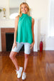 Donning a smocked mock neck, this elegant sleeveless crinkle woven top is perfect for work or play!