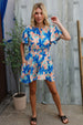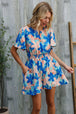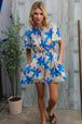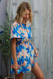 Showcase your fun side with this blue floral print woven notched neck romper designed with side pockets, a smocked waist, flutter ruffle sleeves and a back neck button closure. Look stunning in this flattering romper!