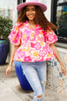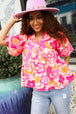 Donning a frill V-neck and a babydoll peplum design, this trendy puff balloon bubble sleeve floral woven top offers a flattering silhouette.  Wear with all your denim.