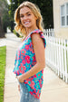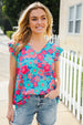 Adorable, lightweight and ready for warmer weather, slip on this flower print flutter sleeve blouse over all your denim bottoms and look adorable wherever you go.