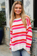 Lightweight and perfect for early spring, this go-to staple for everyday wear features stripes, side slits, a boat neck and ribbing details. Made with loose knit, look stunning in this versatile pullover.