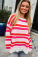 Long Sleeves + Loose Knit + Stripes + Boat Neck