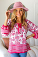 Paisley Boho Print + Bubble Sleeves + Keyhole Front Tie