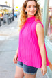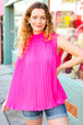 Sweet New Days Fuchsia Smocked Neck Pleated Sleeveless Top