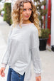 This ivory & grey color block striped round neck oversized top with soft knit will soon be your go-to casual piece for everyday wear. With long sleeves, bubble sleeves and outseam stitch details, wear for a comfy but stylish look.