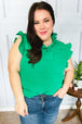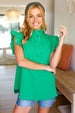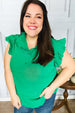 This textured ruffle mock neck top is the perfect top for St Patrick's Day. Featuring flutter sleeves and a button down front, pair with your favorite jeans and booties for a casual look.